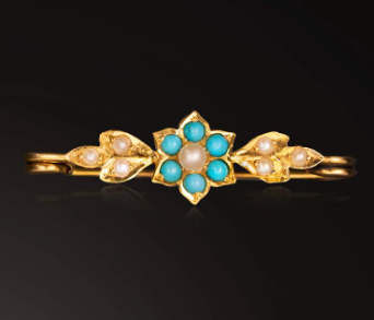 The early Victorians were sentimental folk and this was reflected in their feminine, delicate designs with an emphasis on filigree gold. Key symbols included hearts, flowers, lovebirds, ivy, knots, bows, and snakes. Also popular were REGARD and DEAREST rings with each stone representing a letter from the word. After Prince Albert’s death, not only Queen Victoria but also the whole country went into mourning and this was reflected in the change to more sombre jewellery. Pieces comprising onyx or jet became popular and designs became larger and chunkier.