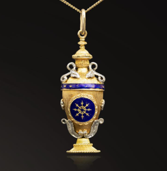 Georgian-era jewellery is mostly handmade and very rare. Often featuring nature-inspired designs such as leaves and birds, and including precious stones. Memento Mori jewellery was also popular at the time (meaning: “remember you will die”) and it was quite morbid, featuring skull motifs and coffins.