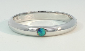 Opalescence ring with an cabochon cut opals. Coober Pedy, transparent opal, with green, mauve and red spectral exchange. |